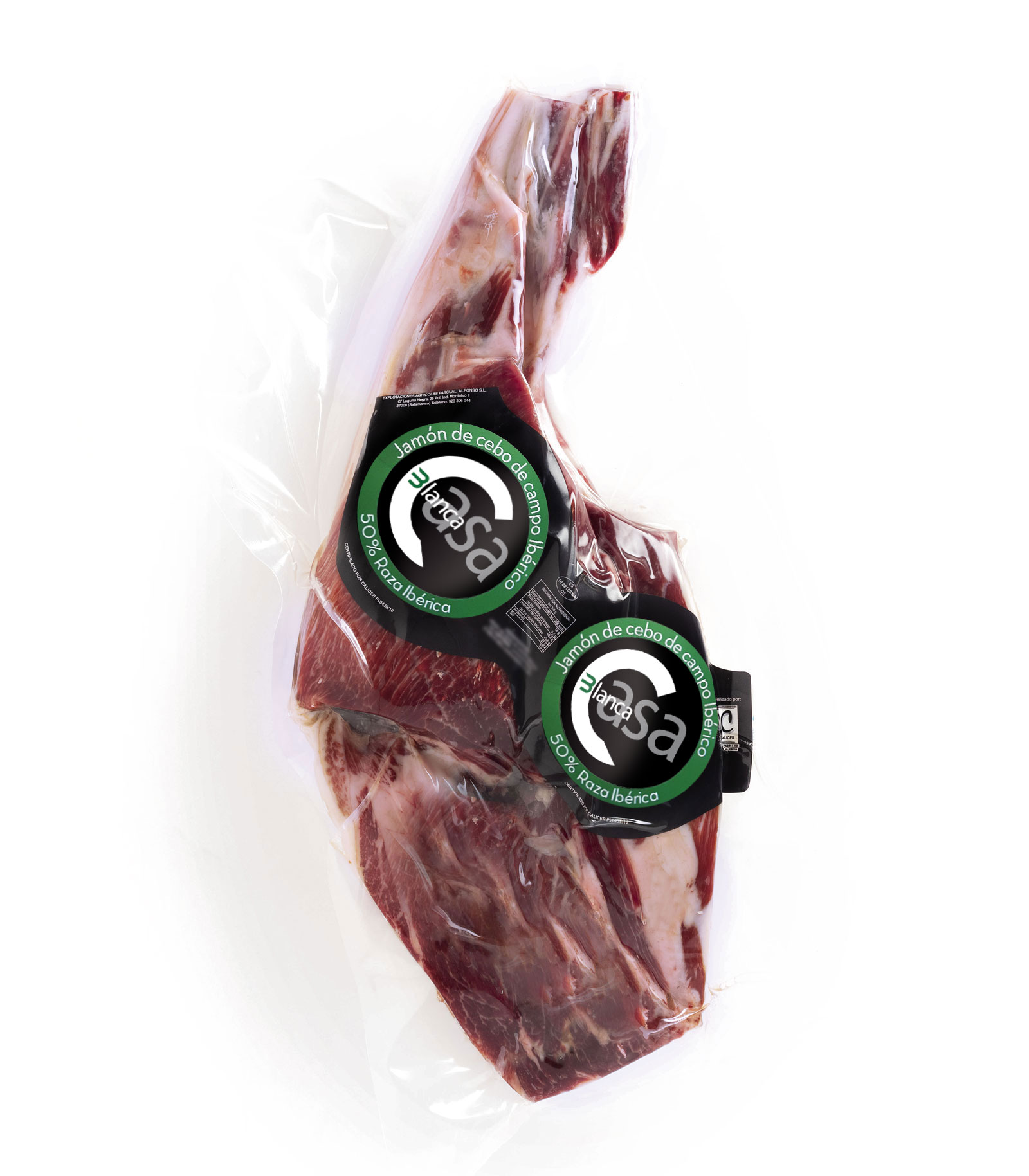 Centro de Jamón de Cebo de Campo Ibérico 50% Raza Ibérica. Producto comercializado como centro de jamón envasado al vacío.